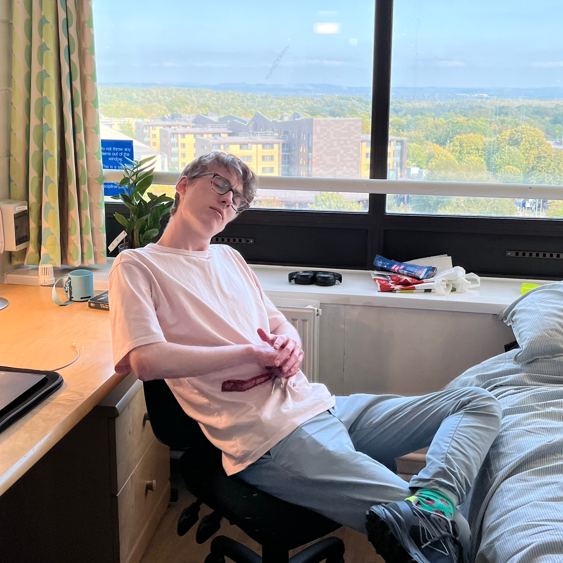 Daniel's campus room on the 9th floor has an amazing view of the Bath countryside. Not that he has time to look out of the window.